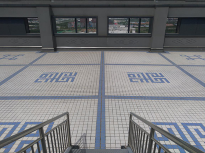 屋面构造物的装饰与屋面装饰形成了整体,连续,没有切砖,充分体现了构筑物,设备安装在装饰前就进行了严格策划与施工定位控制,一次成优,而且尤为突出的是连构造物的装饰亦做到了浑然一体 彩神8争霸平台登录,对缝工整,值得称赞,屋面排水采用了类似闸门的创新防堵做法, 。