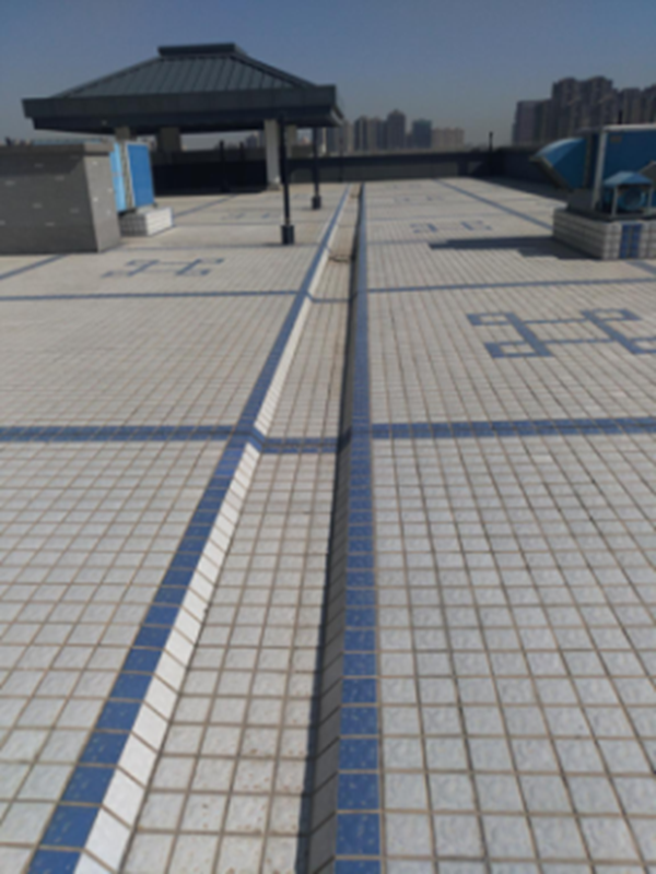 第一张为综合楼屋面 彩神8争霸ios版,第二张为医院屋面,装饰风格,用材一致,地面铺装分格做到了与女儿墙工整居中对应,排水沟采用同类铺装,浑然一体,体现了用心策划, 。