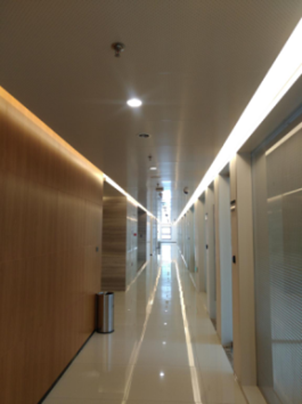过道地面镜面铺装平整度优良,观感上乘,吊顶内的烟感,喷淋,照明间距均匀,线性居中布置,超长的防火卷帘饰面平整,居中 彩神8争霸官网入口,两端留缝均匀,充分体现了做工, 。