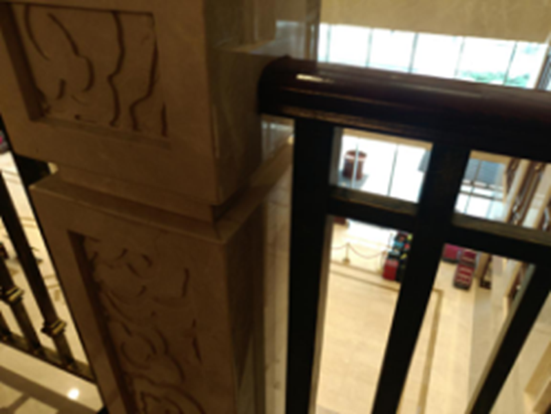 不同材质墙面装饰线不间断 彩神8争霸app下载,做工一致,护栏与石材柱墩衔接牢固,收口精致,体现做工, 。