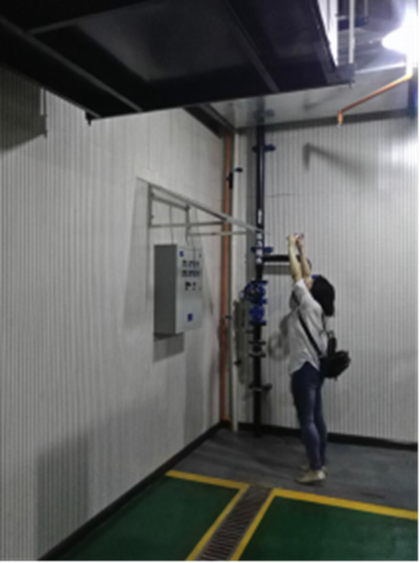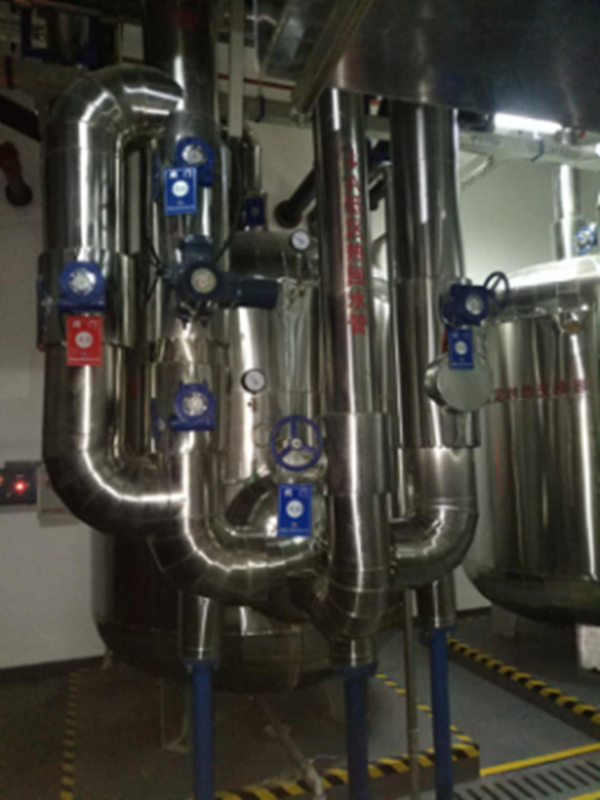 具有保温要求的管道,额外采用彩钢板进行装饰,地面、顶面衔接部位亦采用了彩钢板装饰圈,装饰做工精细,同样较为美观。