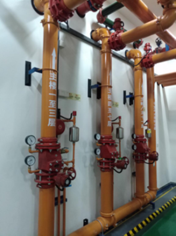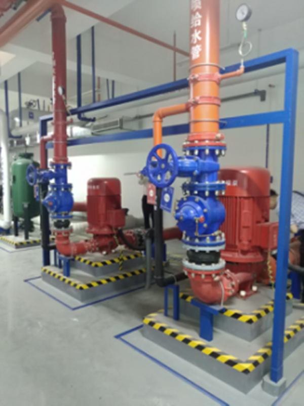 管道穿楼面的防火封堵做工精致;水泵房针对配电箱、控制箱都设置了挡水棚,安全实用。